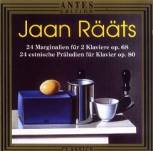Jaan Rääts (né en 1932) est l'un des compositeurs estoniens les plus joués. Il enseigne en outre à l'Académie de Musique d'Estonie. Son œuvre se caractérise par un polystylisme d'allure néoclassique, associé à des formes d'expression modernes. Parmi ses compositions les plus importantes et les plus connues sur la scène internationale figurent ses œuvres pour piano dont 24 Marginalia pour deux pianos, une Sonate pour deux pianos, 24 Préludes estoniens, de la musique pour ensemble de chambre, plusieurs symphonies et des concertos pour divers instruments et orchestre. Son Concerto de chambre op.16 (1961) a été joué dans 24 pays (dont l'Allemagne, la Russie, Israël et les EtatsUnis avec l'Orchestre philharmonique de New York.)